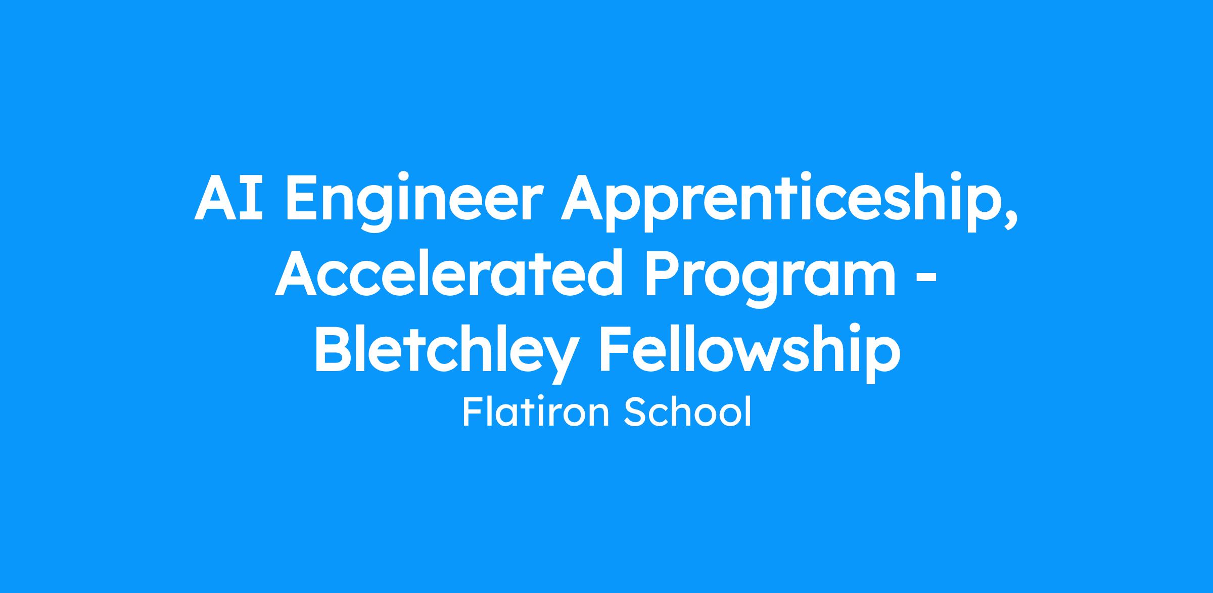 Flatiron School is offering an apprenticeship opportunity for early-career developers to earn income while learning. Apprentices will enroll in Flatiron’s AI part-time bootcamp and be matched with one of Bletchley Fellowship’s employer partners for a paid apprenticeship throughout the duration of the program.