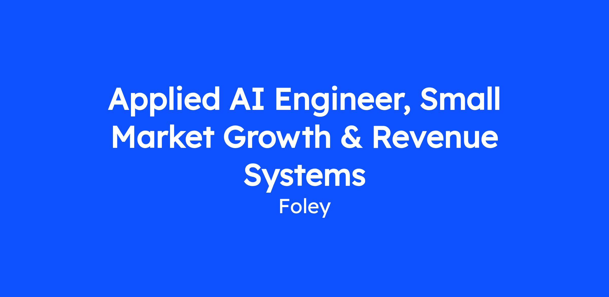 Foley is hiring an Applied AI Engineer to build and scale AI-driven revenue systems within our Small Market segment. This role sits at the intersection of AI, growth, and revenue execution—designing systems that convert inbound demand into measurable revenue outcomes.