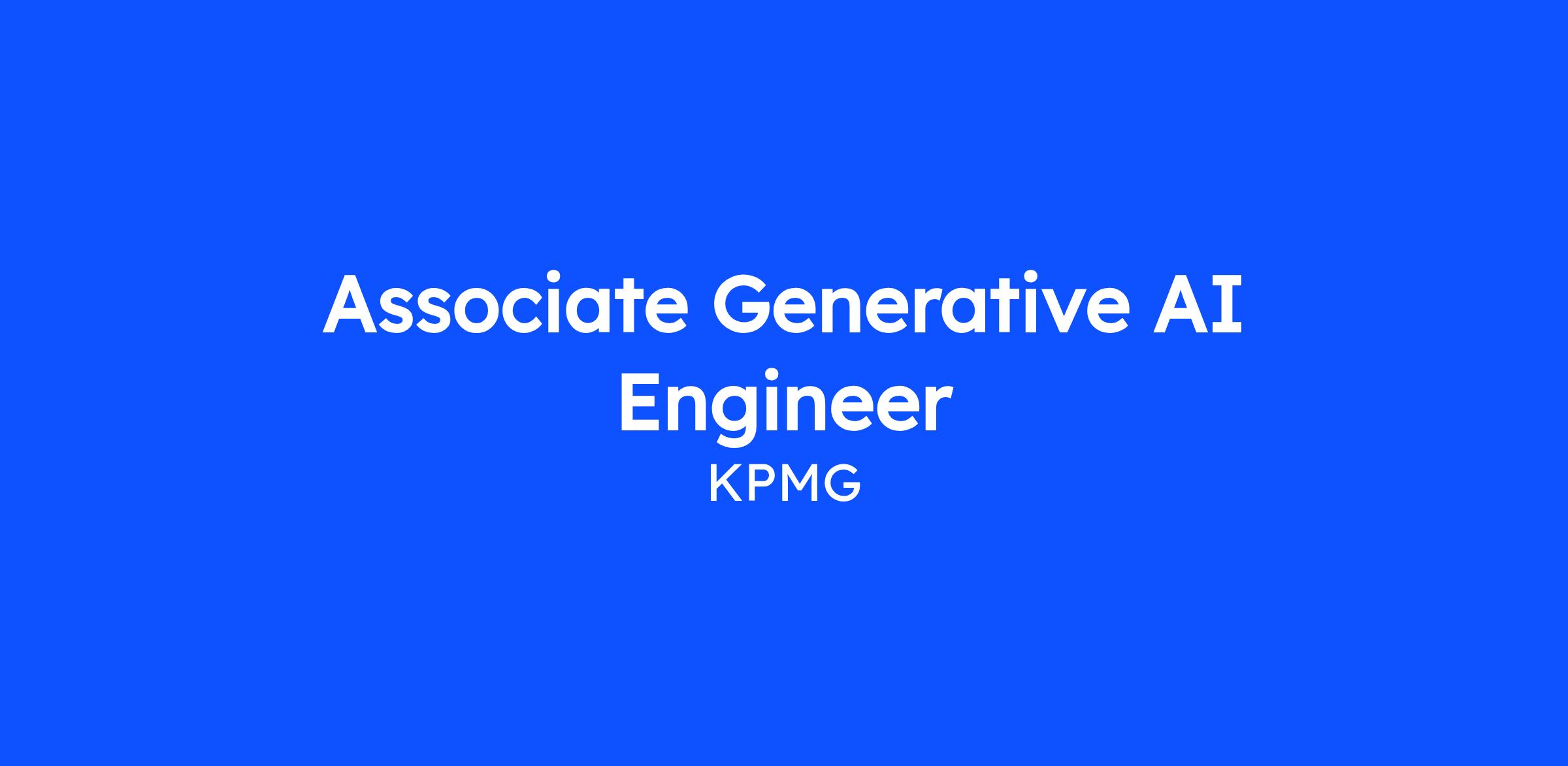 We are seeking an Associate Generative AI Engineer to join our AI squad at KPMG. This role blends hands-on engineering with exposure to system design and client-facing delivery, making it an excellent opportunity for engineers early in their career to work on real, production-grade GenAI systems.
