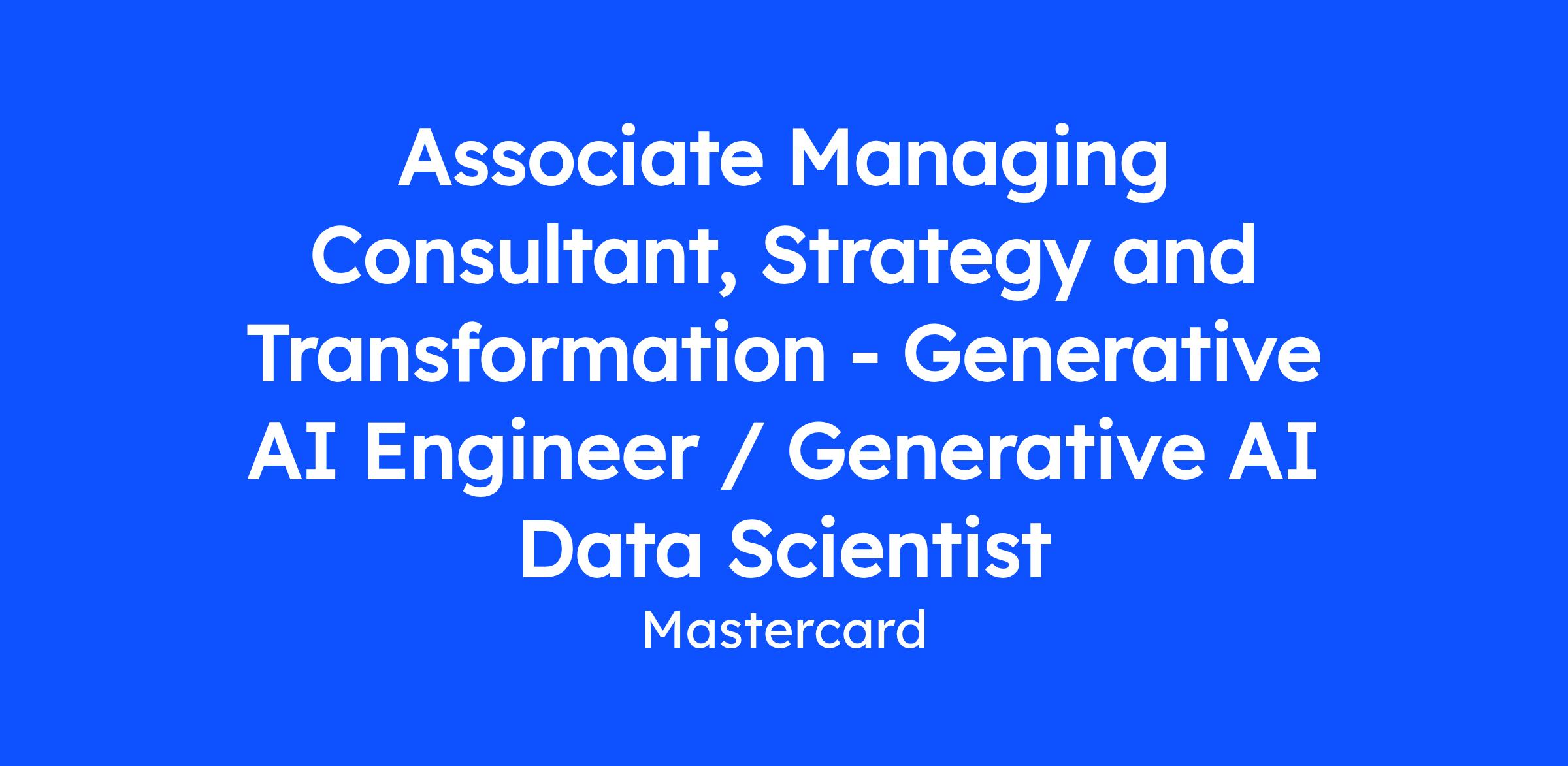 Associate Managing Consultant, Strategy and Transformation - Generative AI Engineer / Generative AI Data Scientist