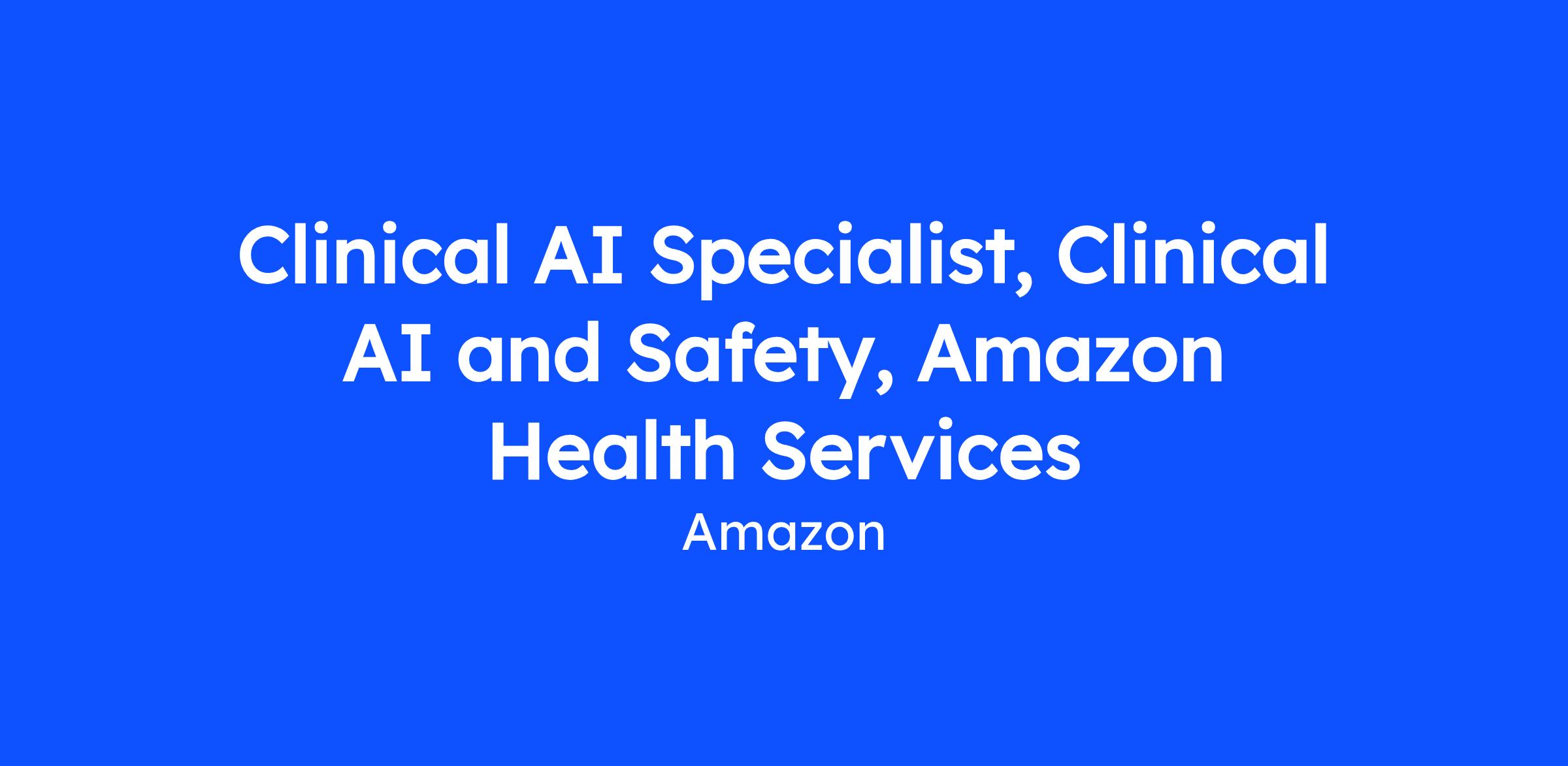 You'll join the Clinical AI team at Amazon Health Services, working at the forefront of healthcare technology. The team partners closely with product and engineering to shape how AI tools are built and evaluated across the organization.
