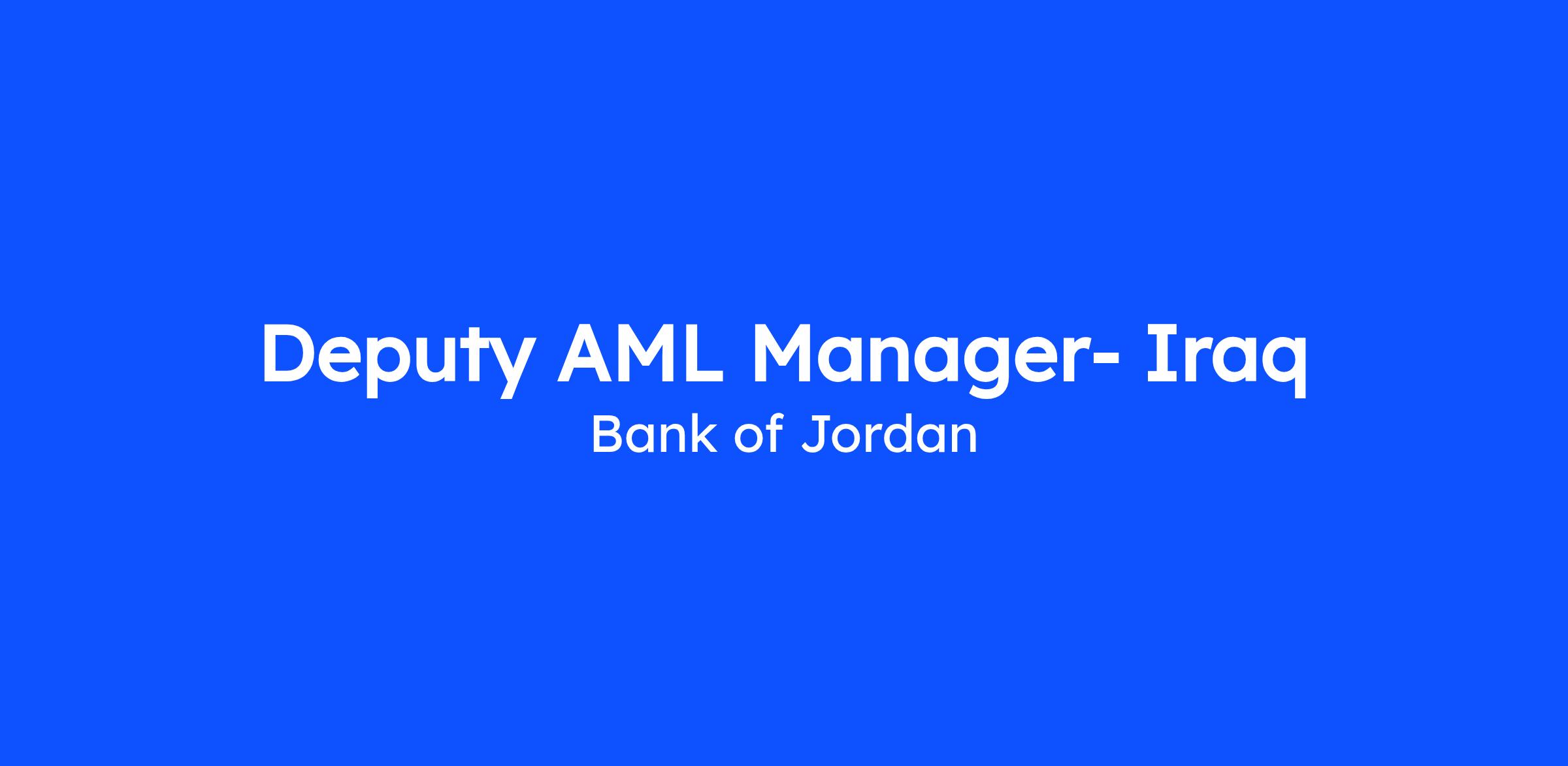 DescriptionBank of Jordan is searching for a skilled and dedicated Deputy AML Manager to support our Anti-Money Laundering (AML) program in Iraq. In this crucial role, you will assist the AML Manager in executing the bank's AML compliance initiatives and strategies, ensuring adherence to local regulations and international standards.