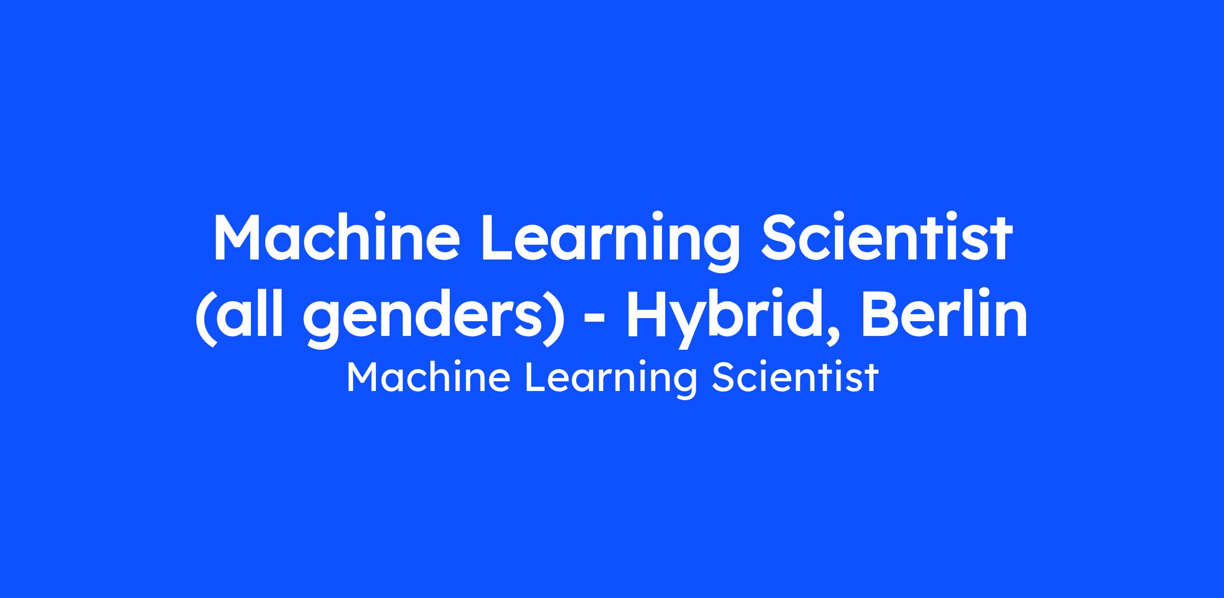 Machine Learning Scientist (all genders) - Hybrid, Berlin