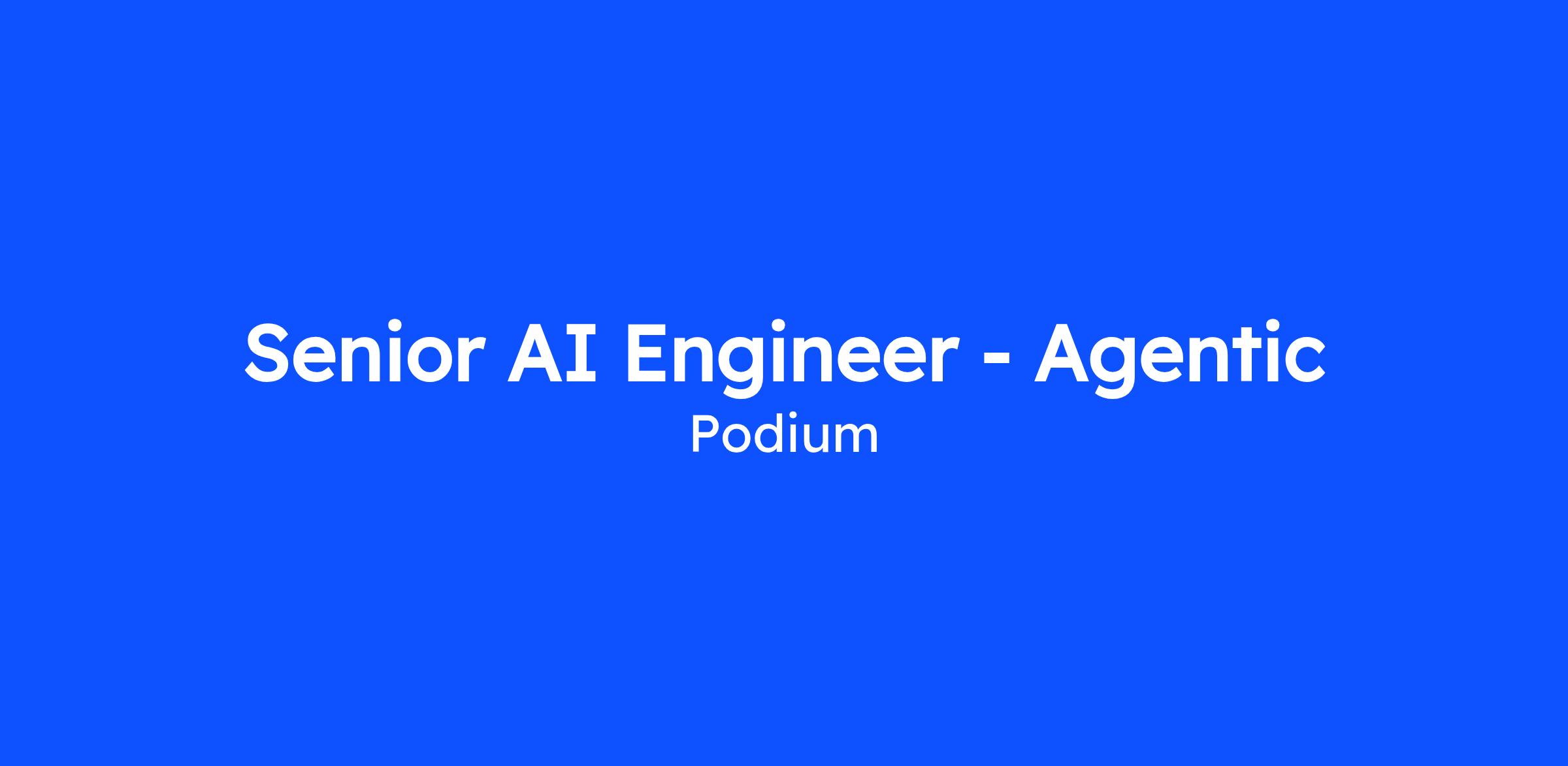 Podium is looking for a talented Senior AI Engineer to help build and scale our AI Agent platform—a powerful system that autonomously interacts with customers, handling millions of conversations every month. In this role, you’ll design and deliver the software that enables local businesses to manage complex customer interactions automatically, book more appointments, and serve their customers more effectively across multiple channels (e.g., voice, SMS, chat).