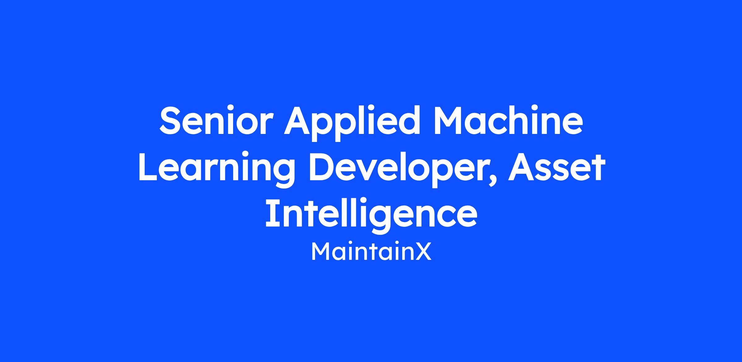 We are seeking a highly skilled and motivated Senior Applied Machine Learning Developer to guide the technical direction and architecture of our Predictive Maintenance and Asset Intelligence initiatives.