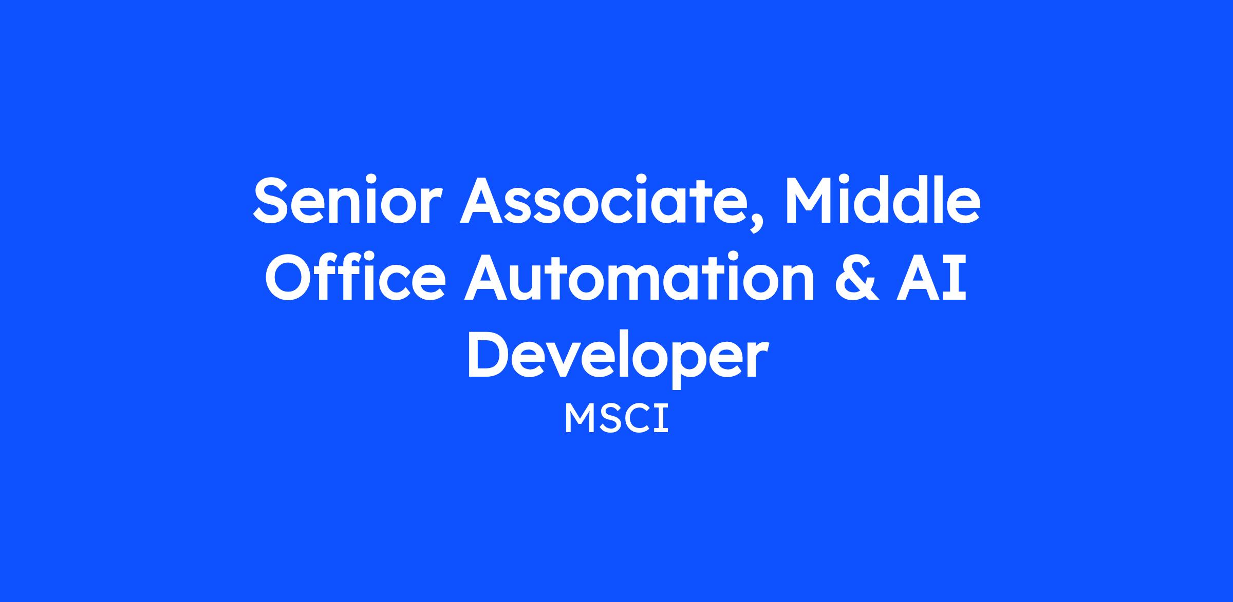 We are seeking a Senior Associate Developer to join our Middle Office Automation and AI team. This hands-on developer will be a key contributor in eliminating manual Sales Operations processes through automation, tech debt reduction, and AI-driven solutions. This role will focus on building and deploying solutions that streamline deal booking, contract generation, financial close processes, and client permissioning workflows.