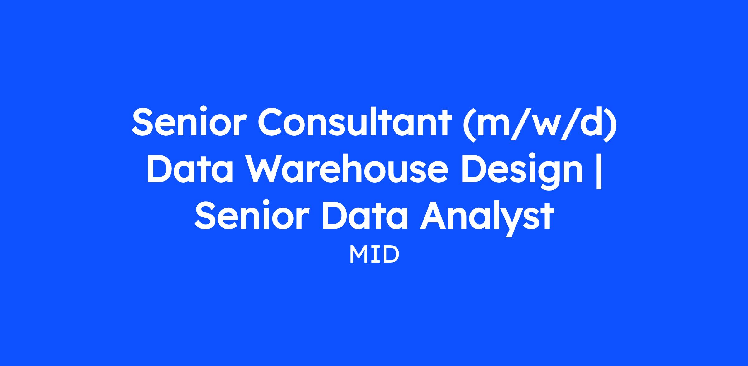 Senior Consultant (m/w/d) Data Warehouse Design | Senior Data Analyst
