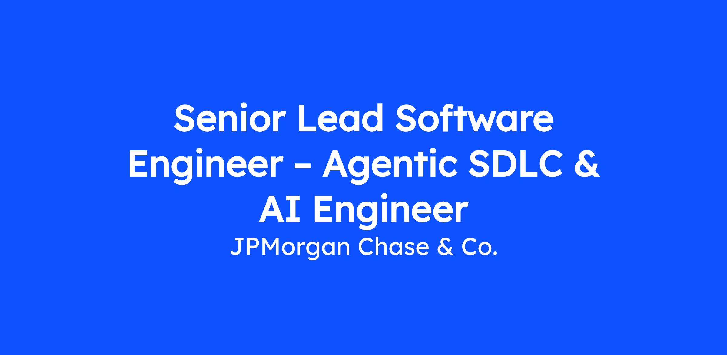 As a Senior Lead Software Engineer - Agentic Software Development Lifecycle & AI Engineer at JPMorgan Chase within the Commercial & Investment Bank’s Market Tech – Sales, Research, and Data portfolio, you will be at the forefront of our transformation to an Agentic Software Development Lifecycle (ADLC). In this technical leadership role, you will empower engineering teams to approach an Agent First development mindset, leveraging advanced coding assistants and LLM agent frameworks such as GitHub Copilot and, Anthropic Claude Code. You will also play a key role in technical enablement, distilling complex AI concepts for diverse audiences. This is a unique opportunity to influence our engineering organization, enterprise-wide standards, and collaborate with talented engineers across the organization. All while ensuring our solutions remain robust, stable, and reliable for our customers and clients.