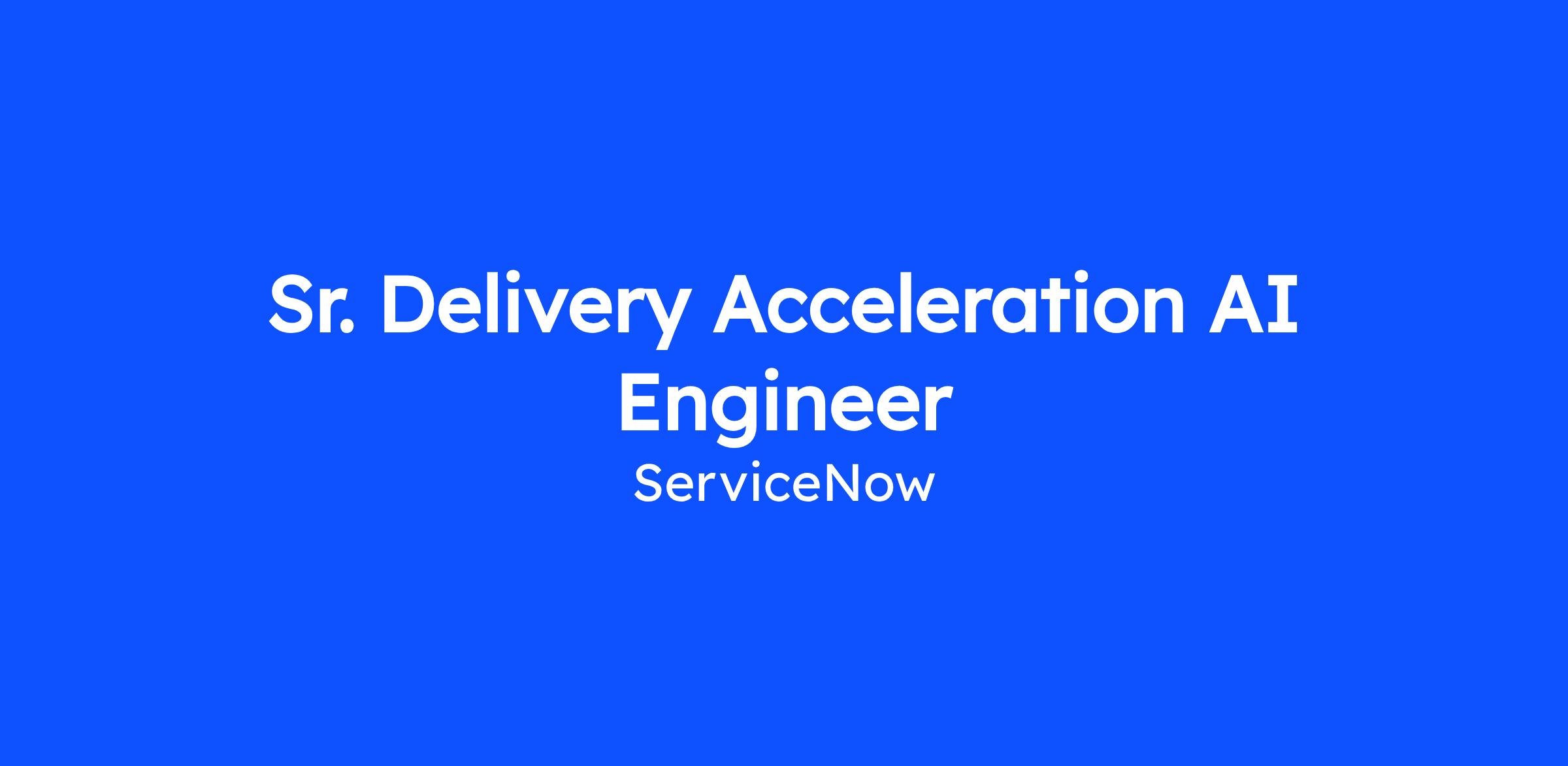 As a Sr. Delivery Acceleration AI Engineer, you will design, develop, and optimize AI-powered autonomous implementation solutions that transform how ServiceNow Expert Services deliver customer implementations. Working within the Delivery Acceleration team, you’ll focus on building and refining AI agents that automate ServiceNow configuration, generate implementation artifacts, and accelerate time-to-deploy—turning what previously required weeks of manual effort into AI-driven delivery that produces production-ready outputs in hours.
