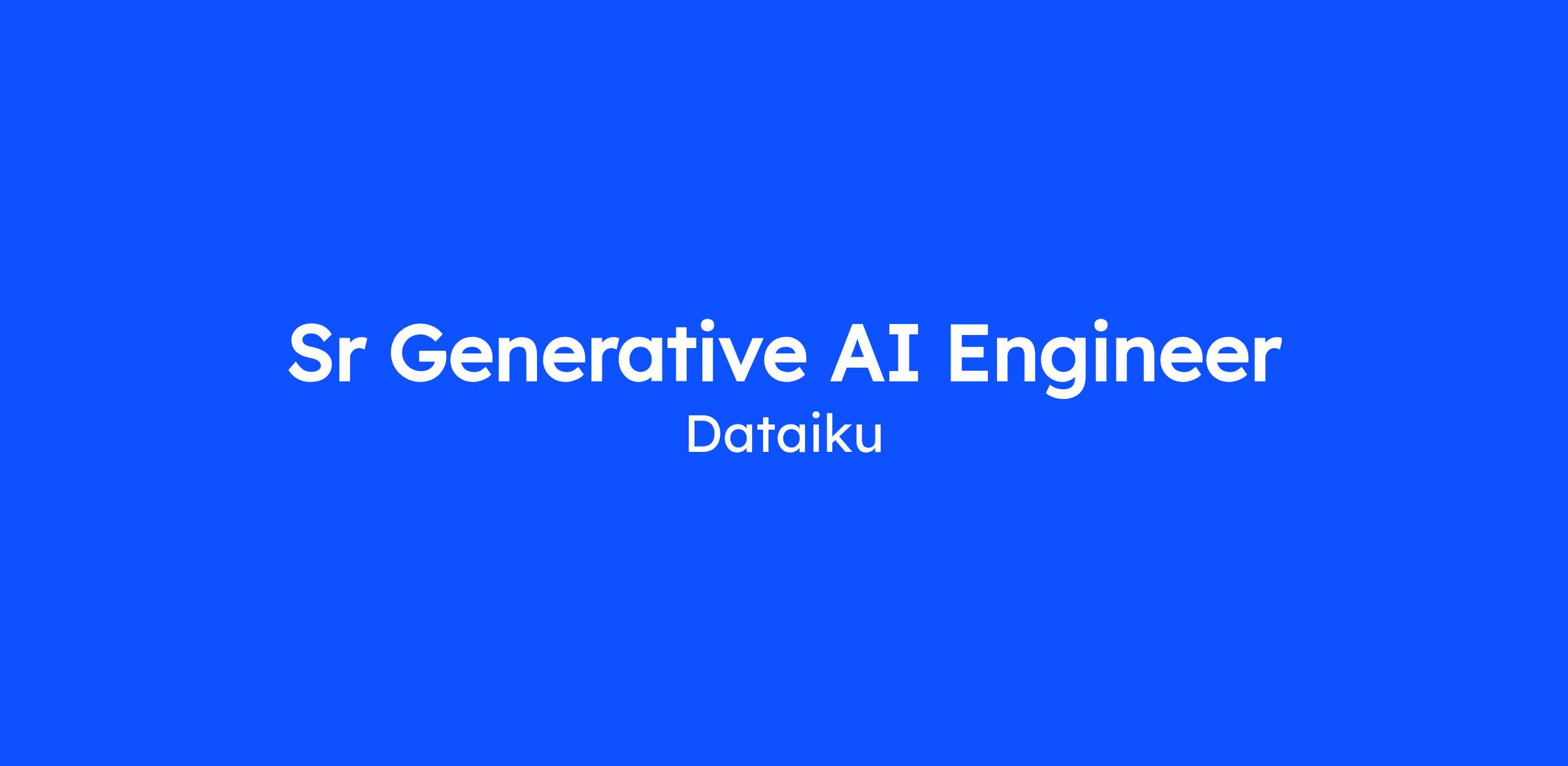 As a Sr Generative AI Engineer on the ED&A team, you will build the agentic AI systems that change how Dataiku runs internally. The role is hands-on and end-to-end, you'll work close to the business, turn real problems into working software, and see your solutions through from first conversation to production.