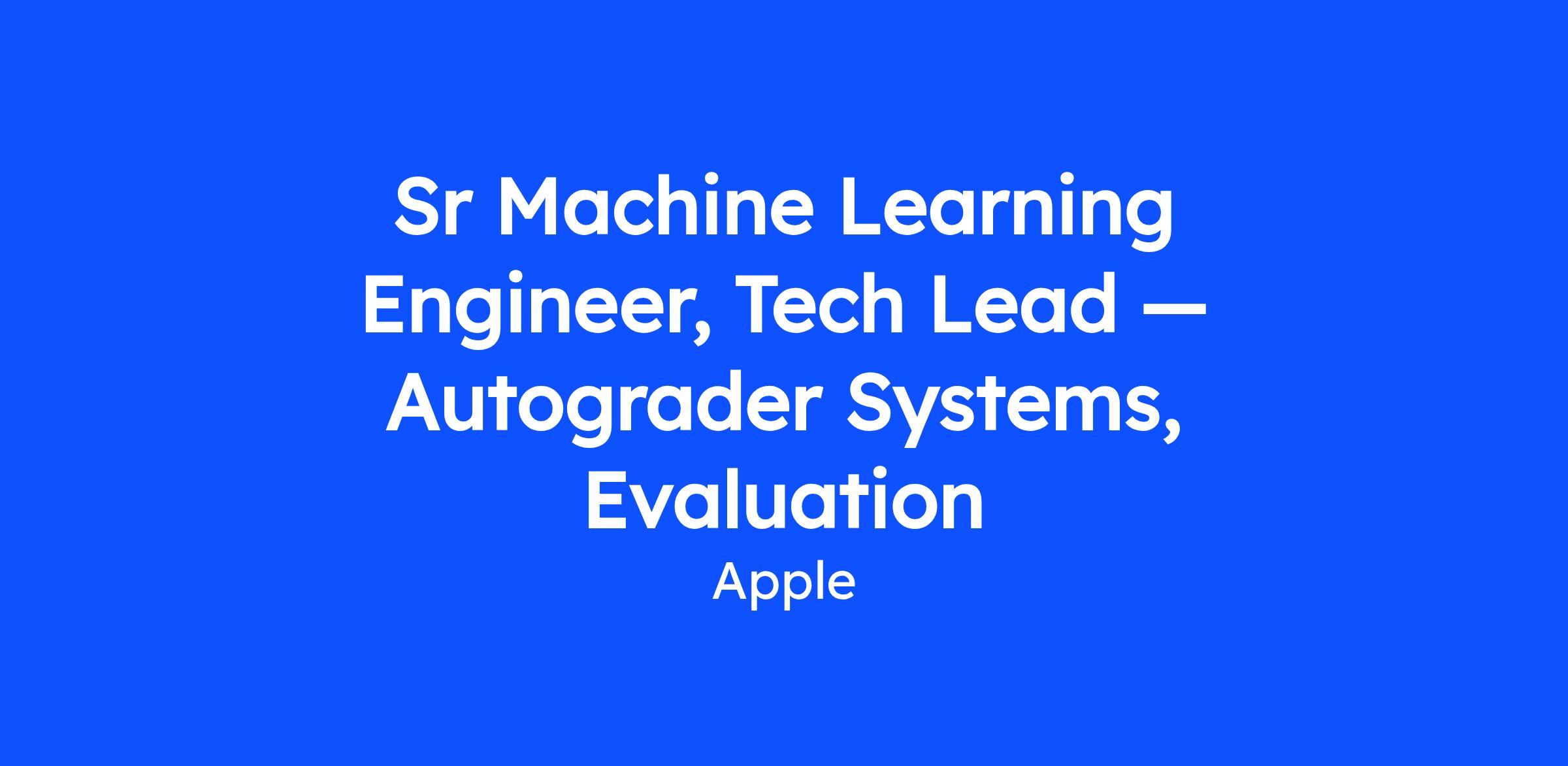 We are looking for a Senior MLE Tech Lead to join a centralized evaluation organization and define the next generation of autograder quality across 20+ of Apple's most visible generative AI features. You will own the end-to-end technical vision for how we evaluate model outputs at scale — pioneering state-of-the-art methods, raising the technical bar, and leading a team of talented MLEs to build a robust autograder training and hillclimbing system from the ground up.