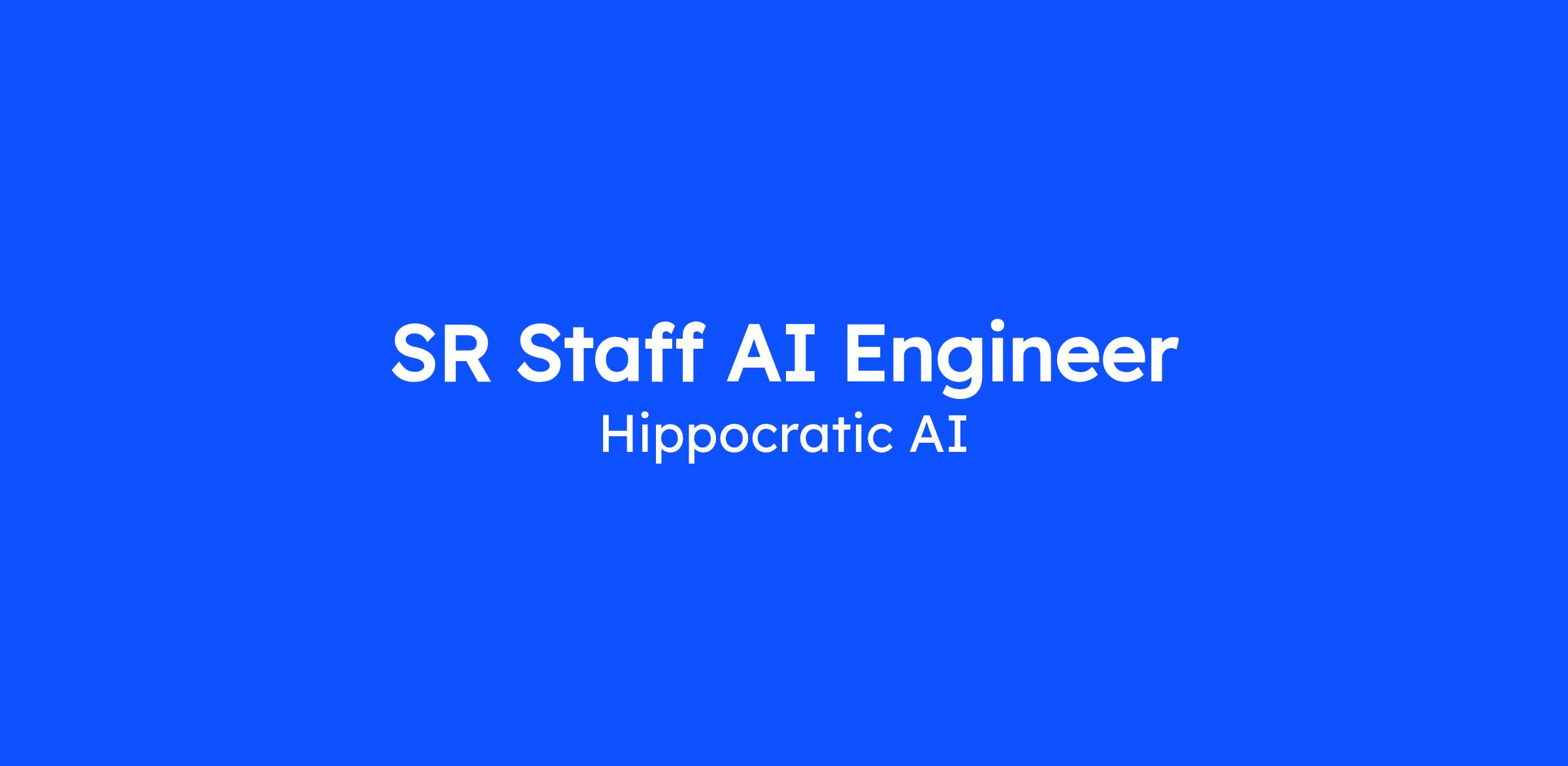 As a Senior Staff AI Engineer at Hippocratic AI, you'll define the multi-year technical strategy for voice-based generative AI in healthcare. You'll architect the foundational platforms that power our clinically safe healthcare agents across every partner and product line, operating at the intersection of large language models, real-time voice, and human-centered product design. This is one of the most senior individual contributor roles at the company. You'll set direction across multiple AI domains RAG, agent orchestration, evaluation, real-time voice, and safety partnering directly with the executive team, AI researchers, product leaders, and clinical experts, and mentoring Staff and Senior engineers across the org. From defining the architectural bets that shape the next generation of our platform to representing Hippocratic AI externally in the research and healthcare communities, your work will determine how patients and providers safely interact with generative AI at scale for years to come. We're looking for principal-level technical leaders who have already built and scaled foundational AI systems people who identify the problems others haven't seen yet, rally teams around ambitious bets, and set the technical bar for an entire organization